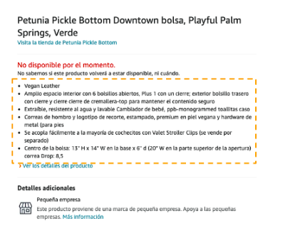 Las viñetas complementan la información que aportan el título y las imágenes, y si sigues estas recomendaciones, ayudarás a tus clientes a conocer mejor los productos que vendes: