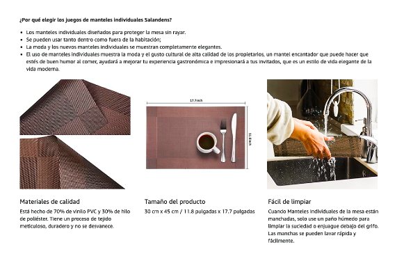 En caso de que cuentes con tu marca registrada en Amazon, además podrás sumar contenido A+ que permite sumar imágenes, videos, y mayor detalle en tus descripciones. Mira cómo podría quedar: