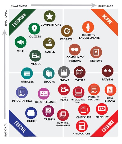 Para generar contenidos frecuentemente y mantener a nuestra audiencia atrapada deberíamos saber qué decir, cómo decirlo y dónde decirlo. Esto es fácil siempre que podamos atribuirle un propósito a la comunicación que realizamos en base a las necesidades de los usuarios y los objetivos que hayamos establecido. Deberíamos decidir, entonces, si queremos ser útiles y brindar información, si queremos entretener y generar contenidos estimulantes, si queremos educar para conseguir que nos reconozcan como marca, si queremos convencerlos y hacer que adquieran nuestros productos o si queremos hacer un mix entre todas estas opciones.